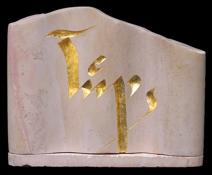 Pierre de Tavel, feuille d'or. 25x30x7 cm.